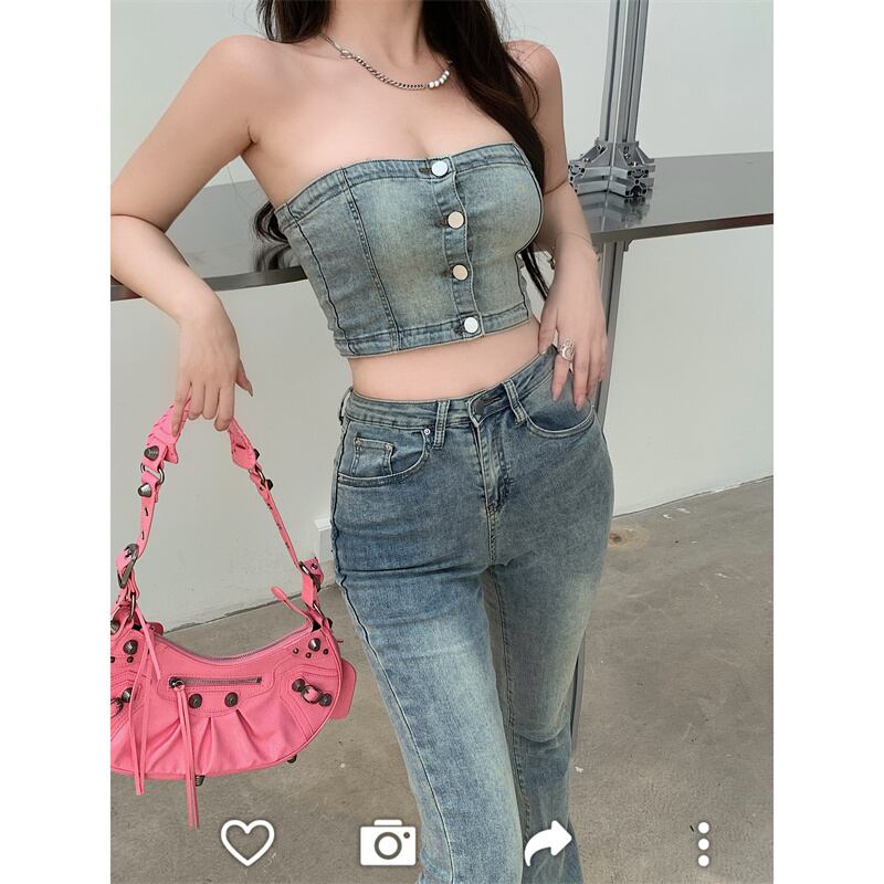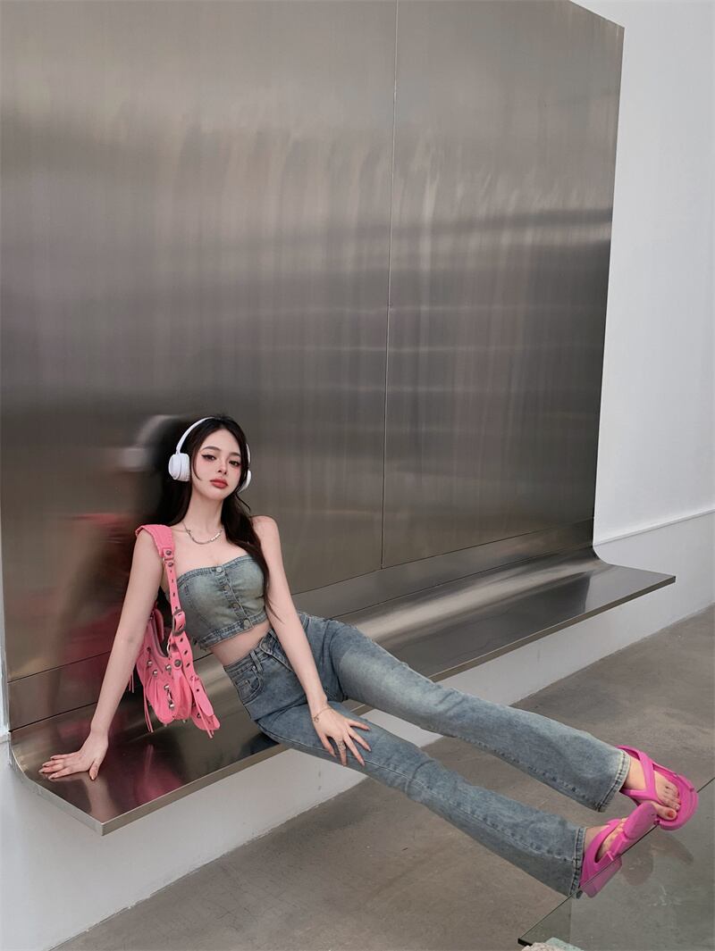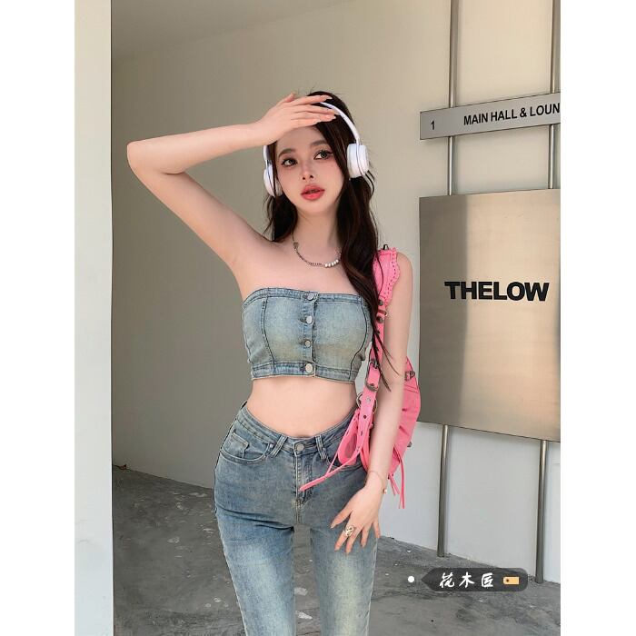 色:カウボーイチューブトップ,わずかなジーンズ