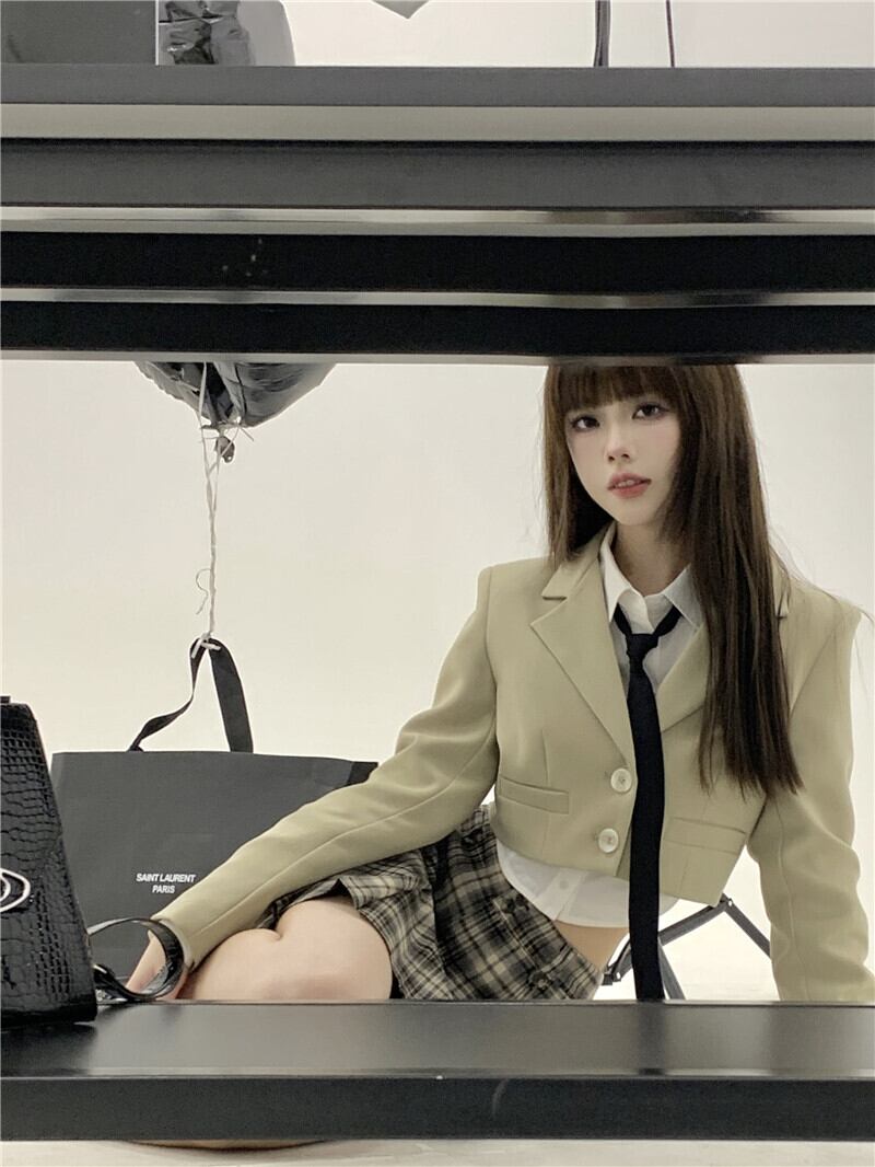 スタンダードスタイルオータムジャケット シャツ プリーツスカート レトロ 秋物 10/5 秋冬 オータム ウインター ナチュラル mi4615989628125