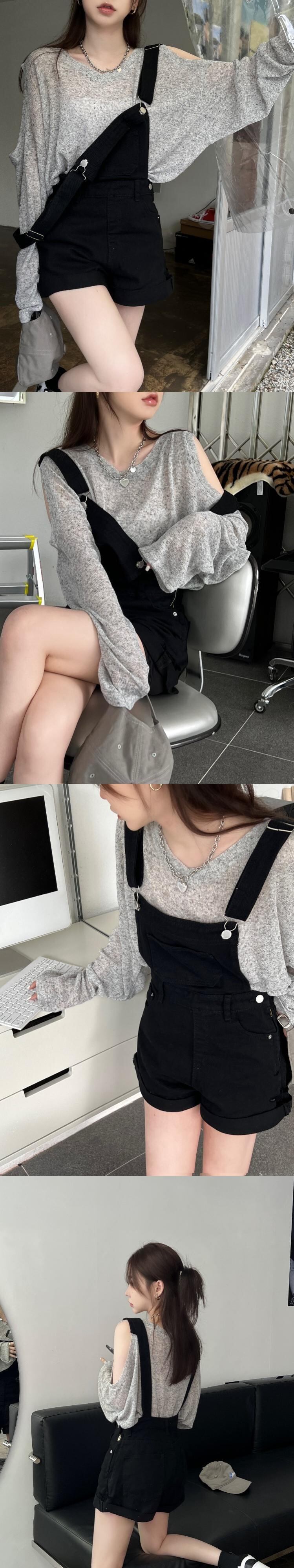 色:シーカラーTシャツ単品,グレーのTシャツシングルピース,Ceeカラーサスペンダーショーツ,ブラックストラップショーツ