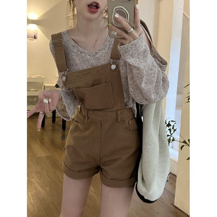 カラーオーバーオール ショーツ サマールーズ薄手ジャンプスーツ オールインワン 夏物 ブルマー 10/5 秋冬 オータム ウインター ナチュラル mi4666833549929