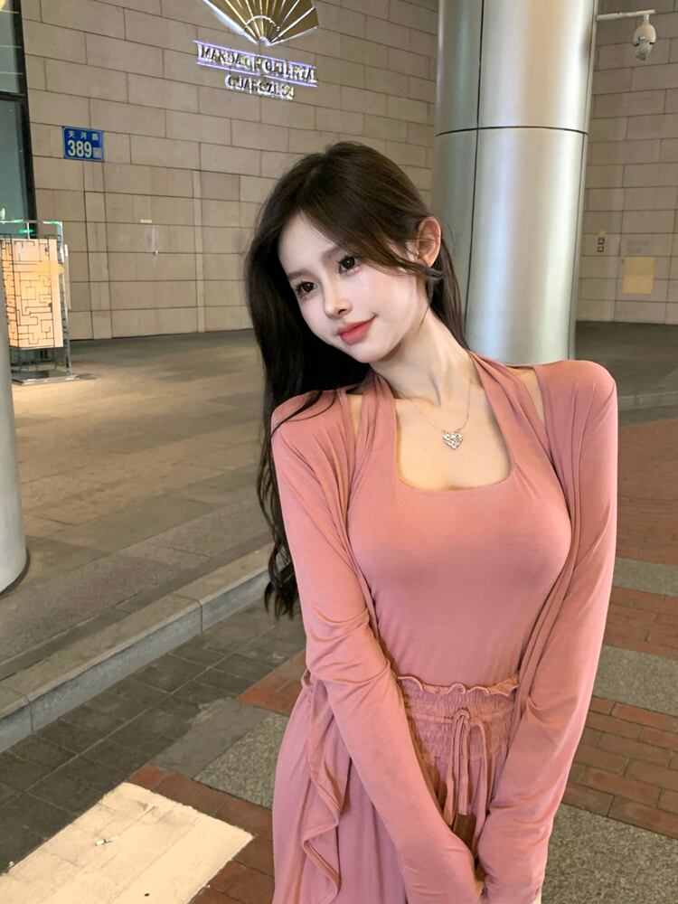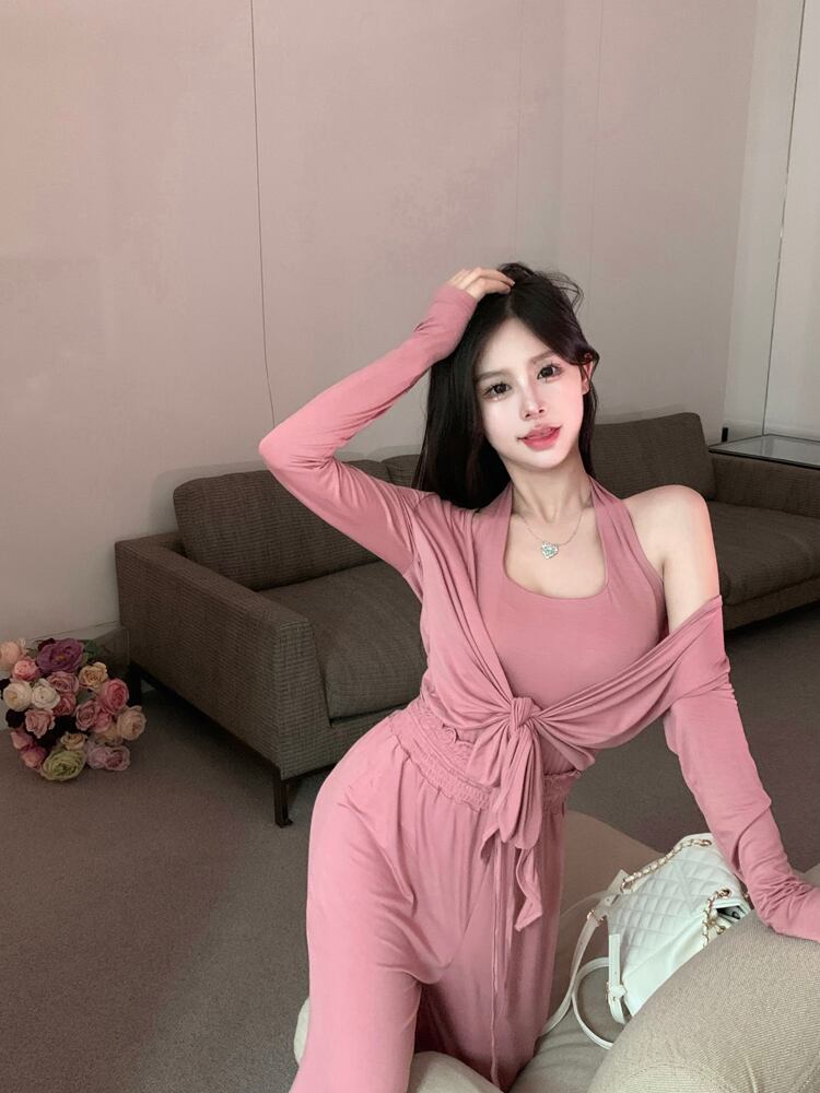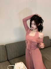 色:ピンクのスリングワンピース,ピンクカーディガンワンピース,ピンクワイドレッグパンツ