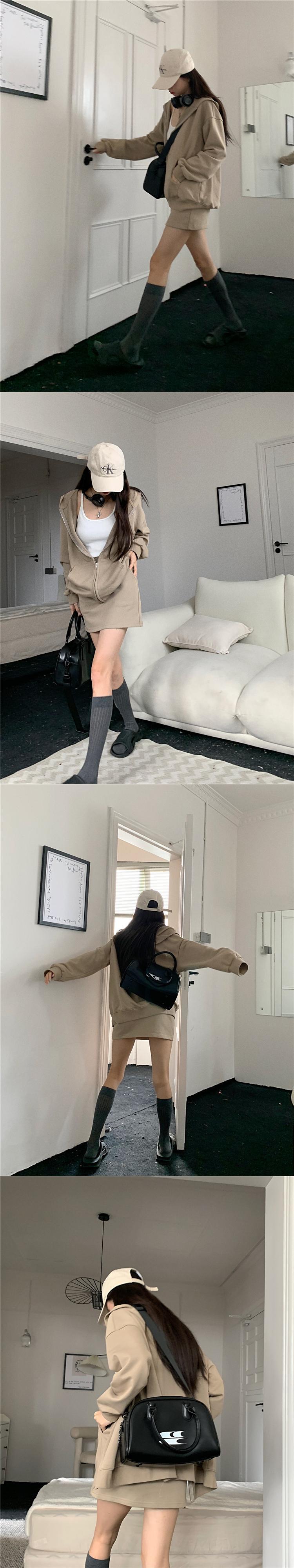 ソリッド カラーカジュアルオータムフードセーター ジャケット スカート 秋物 ソリッドカラー 10/5 秋冬 オータム ウインター ナチュラル mi4660328858564