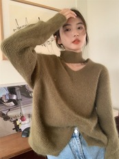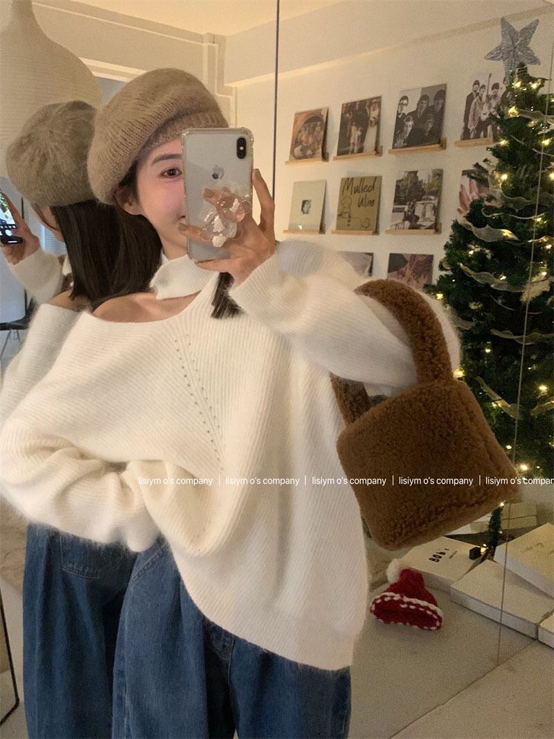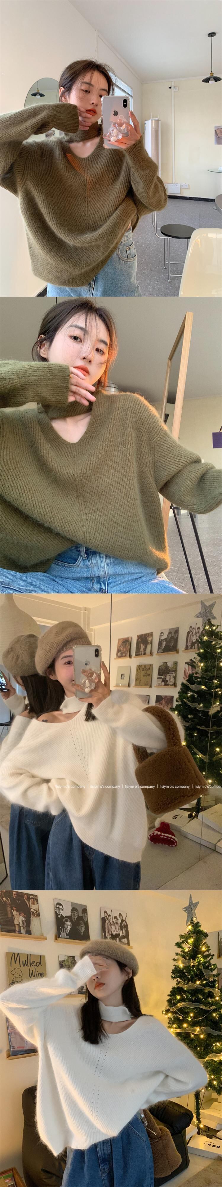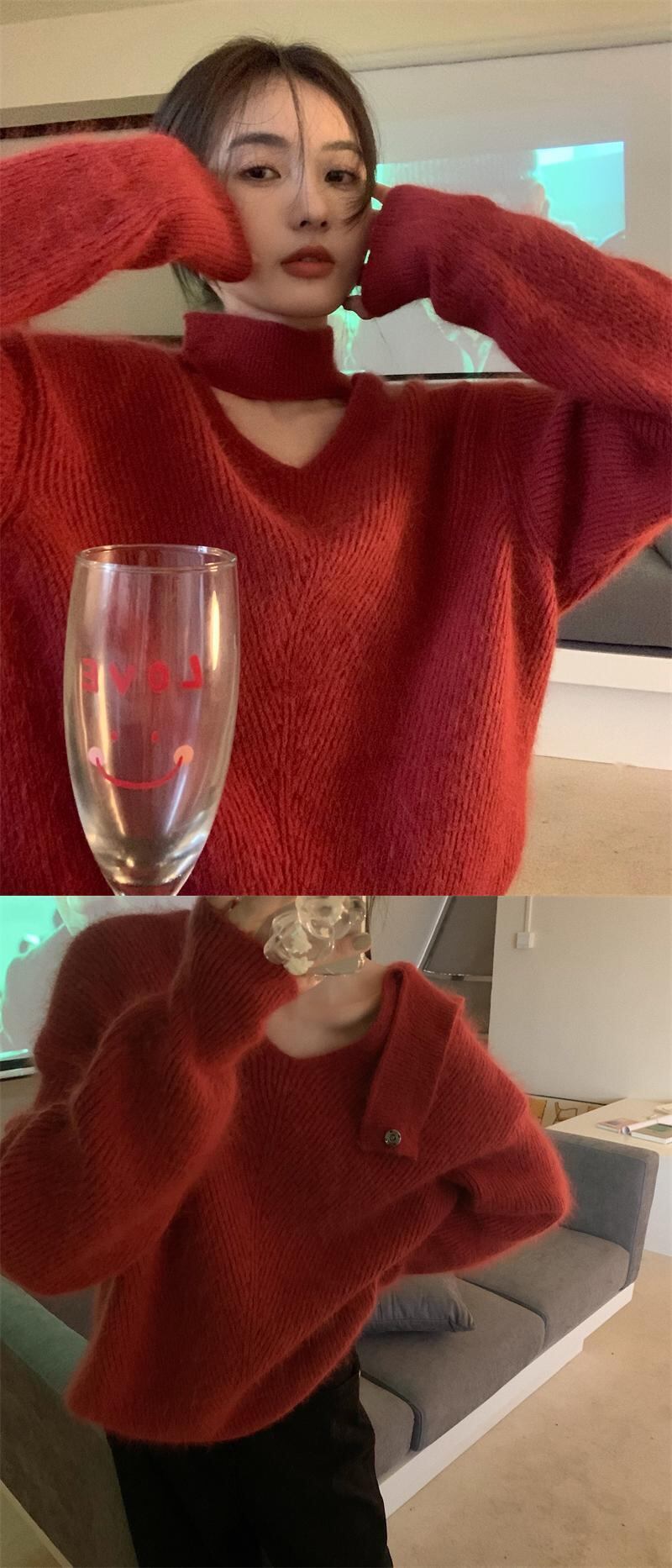 スタンダードレッドVネックセーター オータムウィンタールーズニットトップス レトロ 秋物 冬物 10/5 秋冬 オータム ウインター ナチュラル mi4698336627017