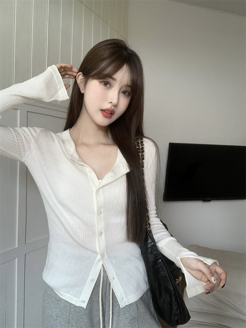 グレーニットセーター オータムスリムフィット薄手カジュアルカーディガントップス ロング 秋物 10/5 秋冬 オータム ウインター ナチュラル mi4640520700257