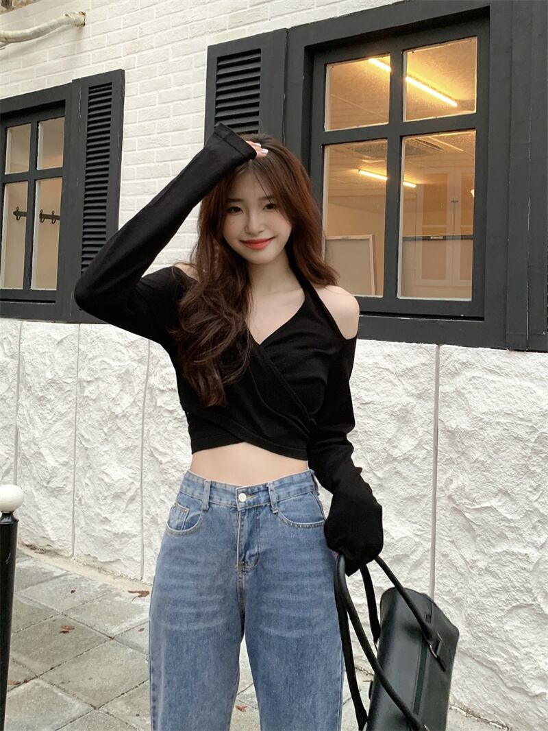 ブラックTシャツ オータムスリムショートトップス ロング 秋物 10/5 秋冬 オータム ウインター ナチュラル mi4648438401969