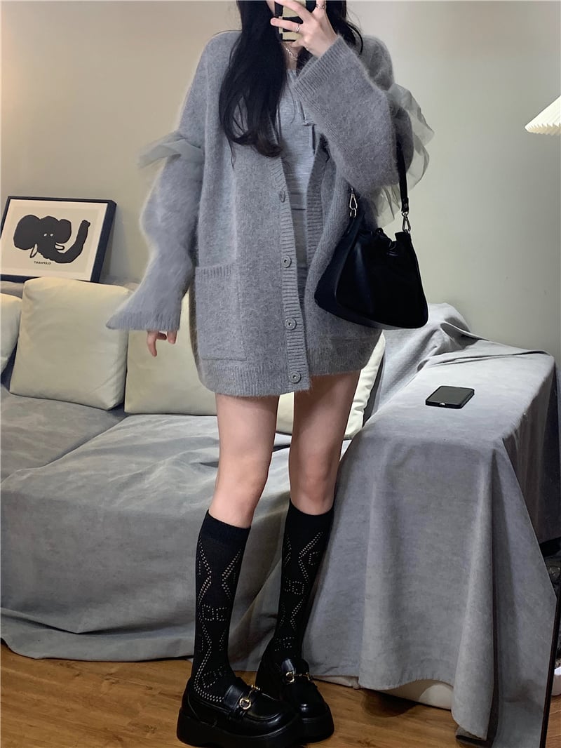 ルーズグレーセーター コート オータムスタイルニットカーディガン 秋物 10/5 秋冬 オータム ウインター ナチュラル mi4697362537017