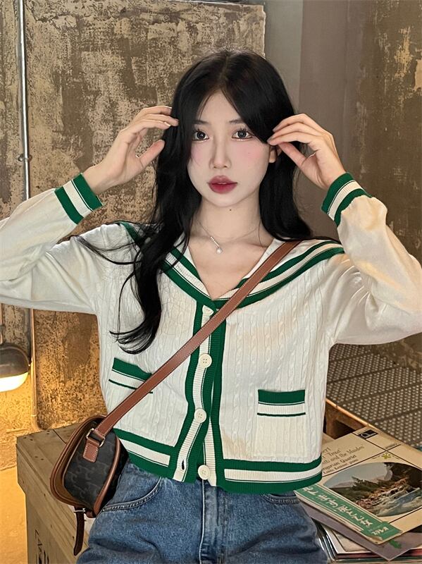 スタイルカラーネイビーショートセーター コート オータム薄手ニットトップス 秋物 10/5 秋冬 オータム ウインター ナチュラル mi4649048774863