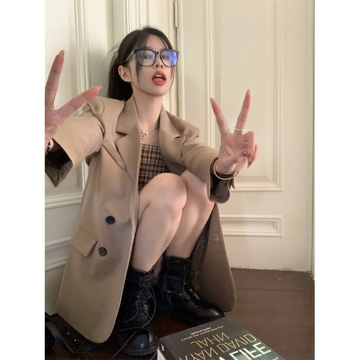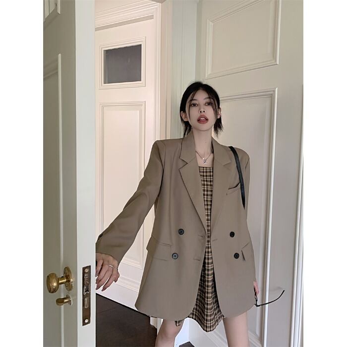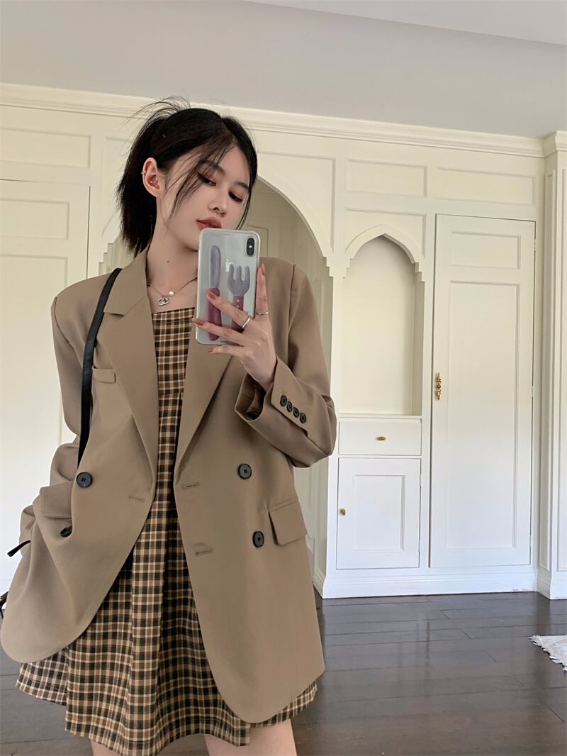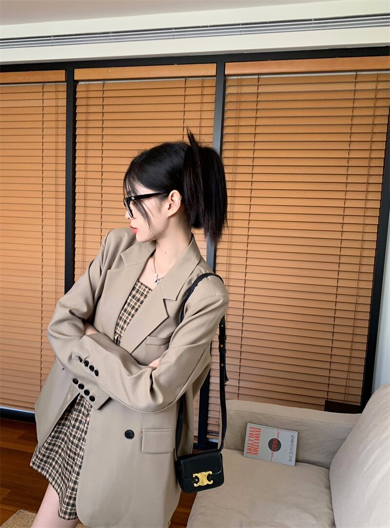 色:格子ストラップのシングルピース,カーキスーツジャケット
