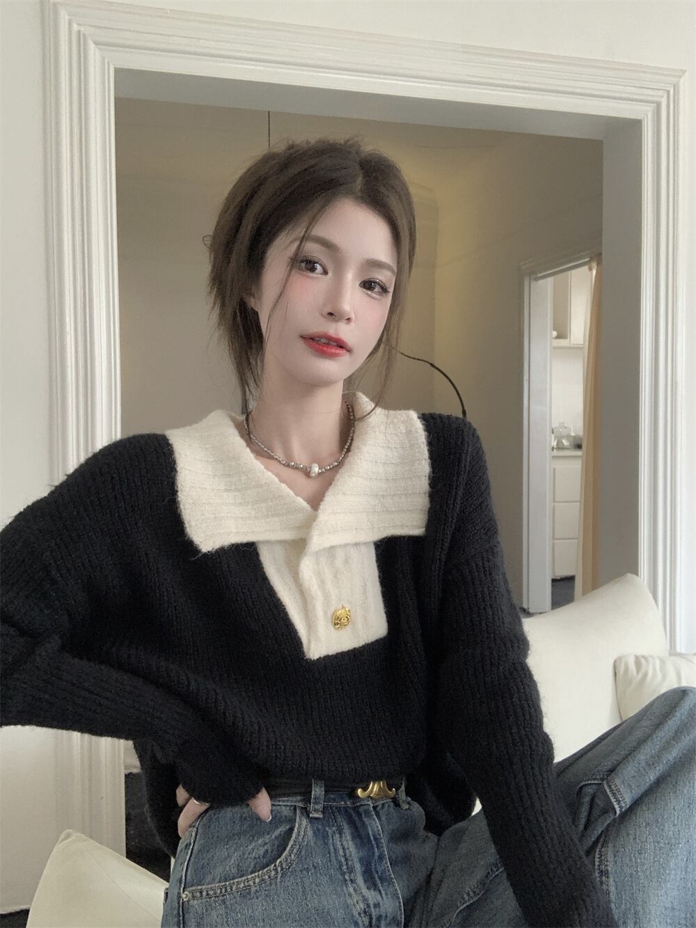 カラープルオーバー セーター オータムスタイルルーズニットトップス 秋物 10/5 秋冬 オータム ウインター ナチュラル mi4650651881561