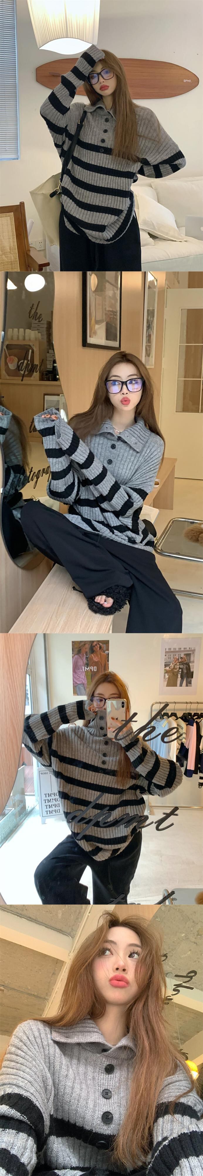 カラーストライプセーター オータムルーズニットトップス 秋物 10/5 秋冬 オータム ウインター ナチュラル mi463918326920