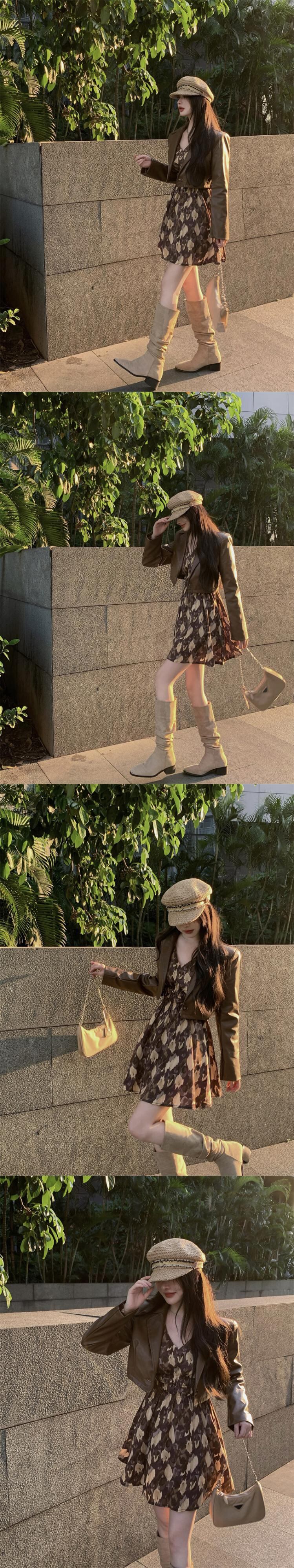 色:花柄ドレス,レザーワンピース