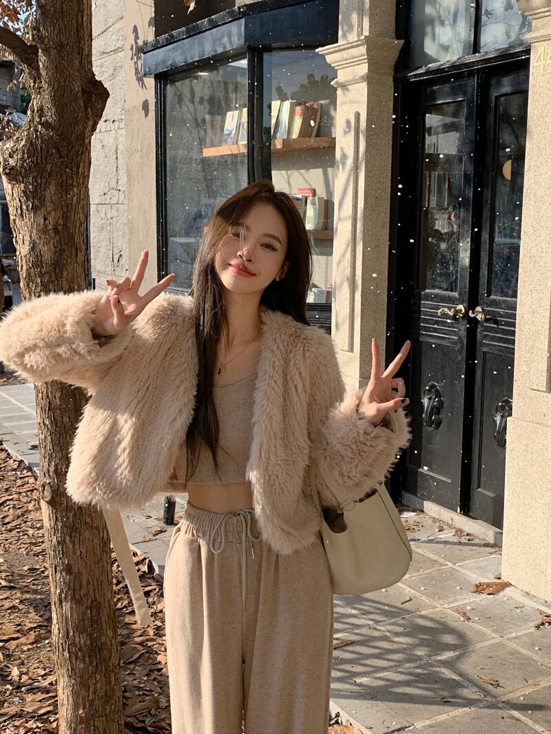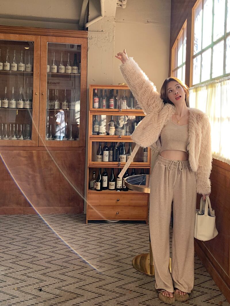 色:ベストワンピース,ワンピースのワイドレッグパンツ,ファーコートシングル