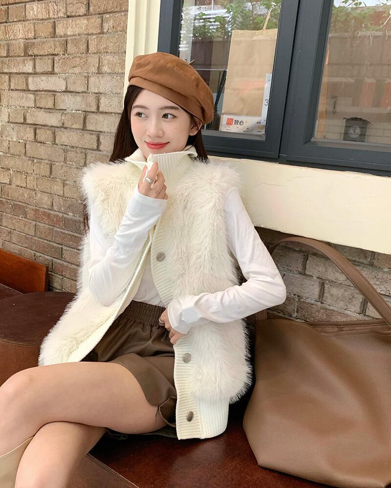 ルーズスタンドカラーカラーニットジャケット オータムウィンターノースリーブトップス 秋物 冬物 ステッチ 10/5 秋冬 オータム ウインター ナチュラル mi4681711673264