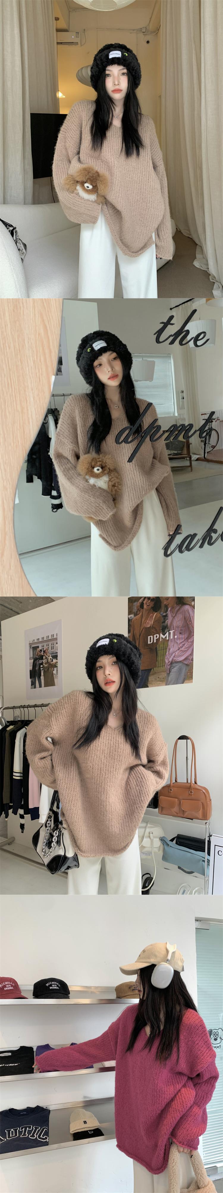 スタンダードVネックプルオーバー セーター オータムルーズニットトップス レトロ 秋物 10/5 秋冬 オータム ウインター ナチュラル mi4626901630988