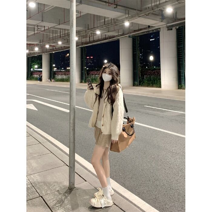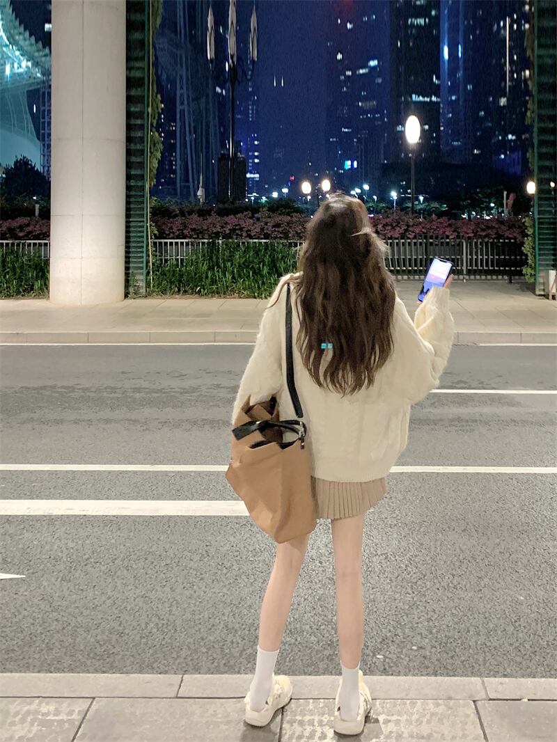 色:クリーミーなセーター,Ceeカラースカートワンピース