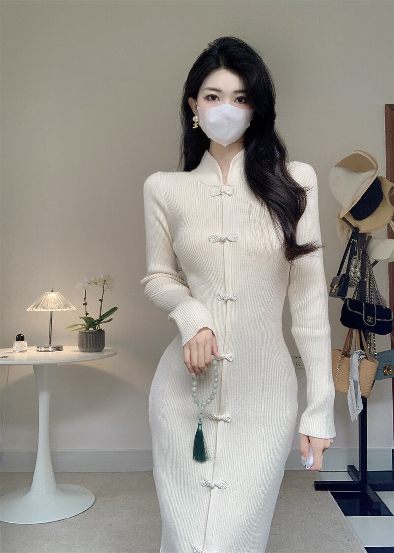 ボタンロングニットドレス オータムウェストスタイルスカート 秋物 10/5 秋冬 オータム ウインター ナチュラル mi4633595913544