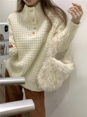 長袖スリーブセーター オータムルーズトップス ロング 秋物 10/5 秋冬 オータム ウインター ナチュラル mi4671835260888