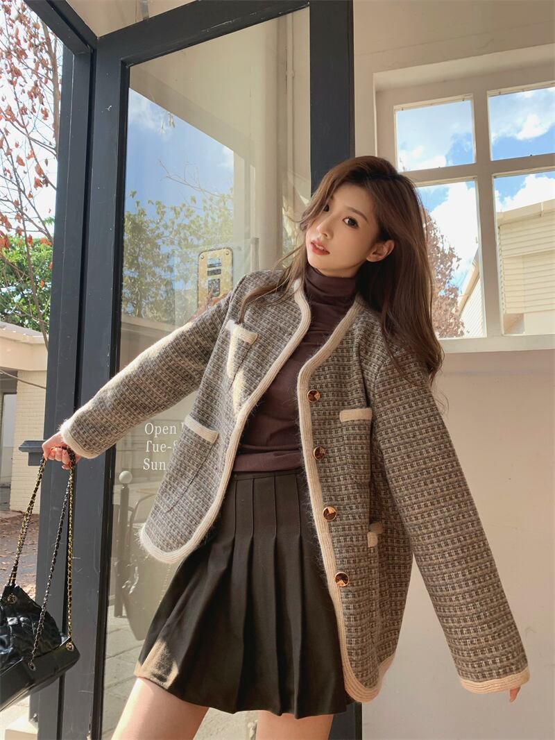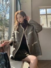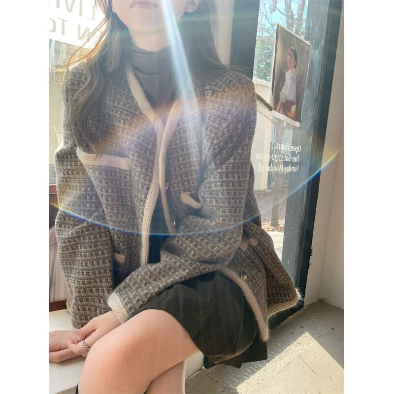 スタンダードコート オータムルーズ薄手ツィードトップス ロング レトロ 秋物 10/5 秋冬 オータム ウインター ナチュラル mi4664354011747