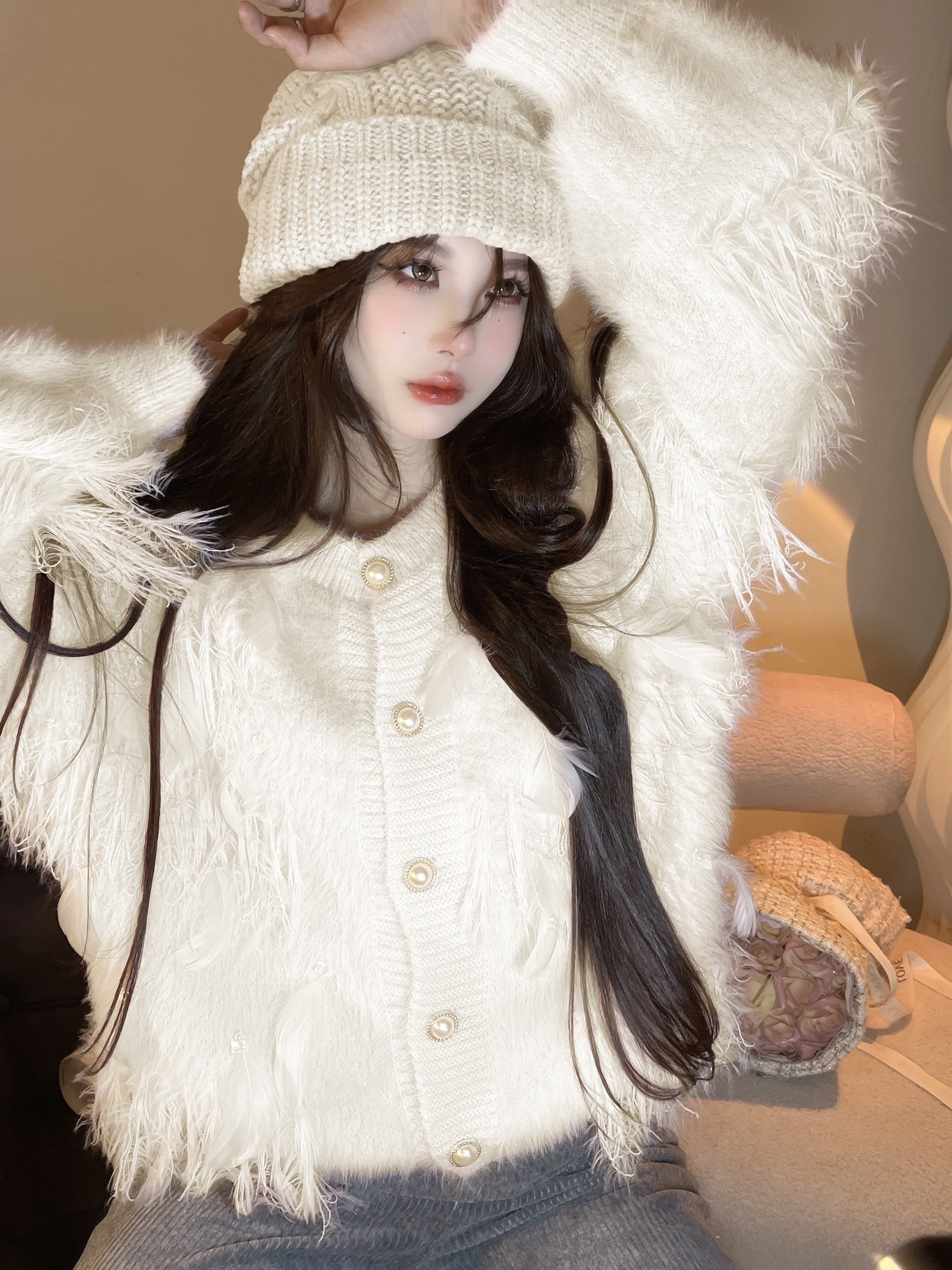 パールセーター コート オータムカーディガントップス ロング 秋物 真珠 10/5 秋冬 オータム ウインター ナチュラル mi4632813160712