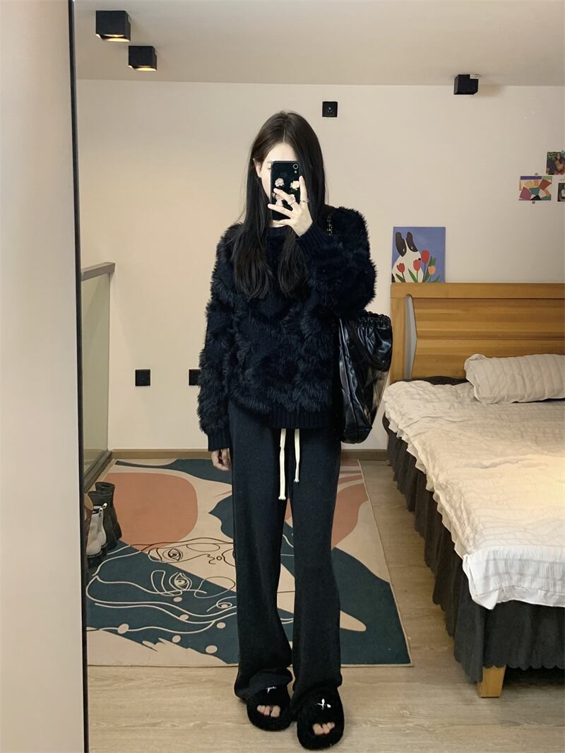 スタイルブラックプルオーバー セーター オータムルーズトップス 秋物 10/5 秋冬 オータム ウインター ナチュラル mi4615049620292