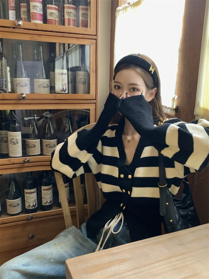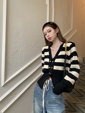 カラーストライプVネックセーター ジャケット オータム薄手カーディガントップス ロング 秋物 10/5 秋冬 オータム ウインター ナチュラル mi4649980777949