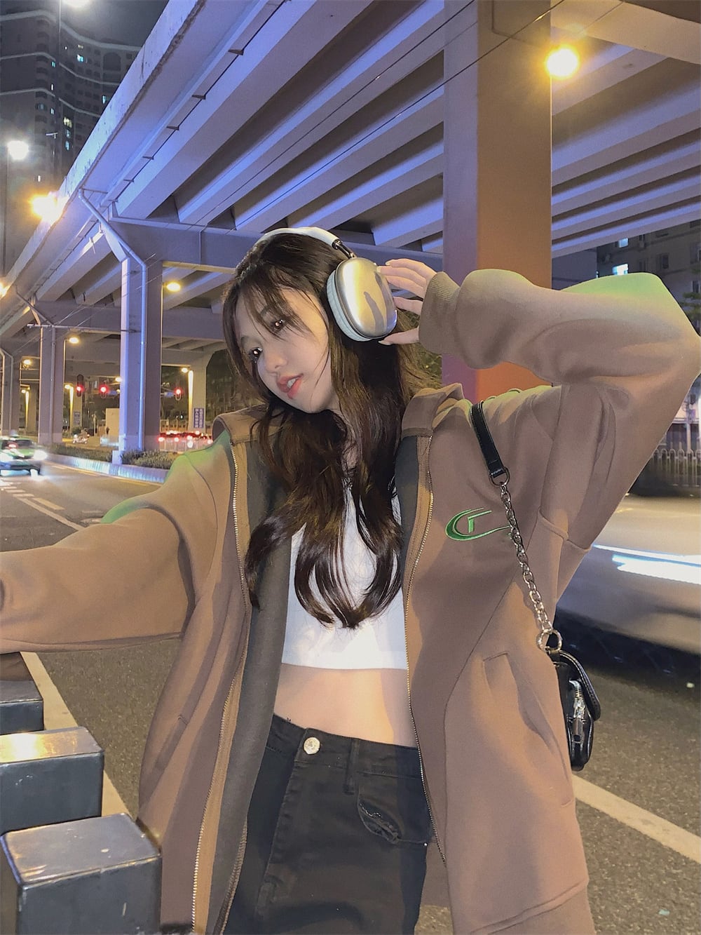 スタンダードルーズフードセーター コート オータムカーディガントップス レッド レトロ 刺繍 秋物 10/5 秋冬 オータム ウインター ナチュラル mi4610679114221