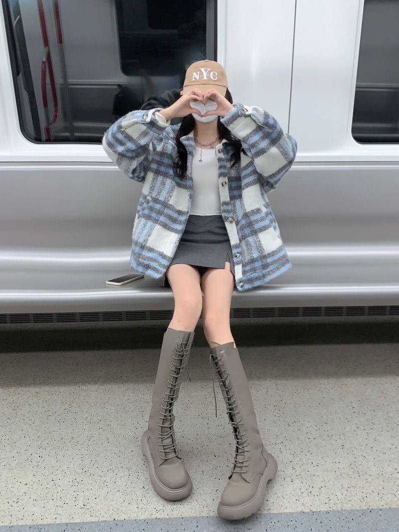格子柄コート オータムウィンターカジュアルルーズトップス ロング 秋物 冬物 10/5 秋冬 オータム ウインター ナチュラル mi4684052994011