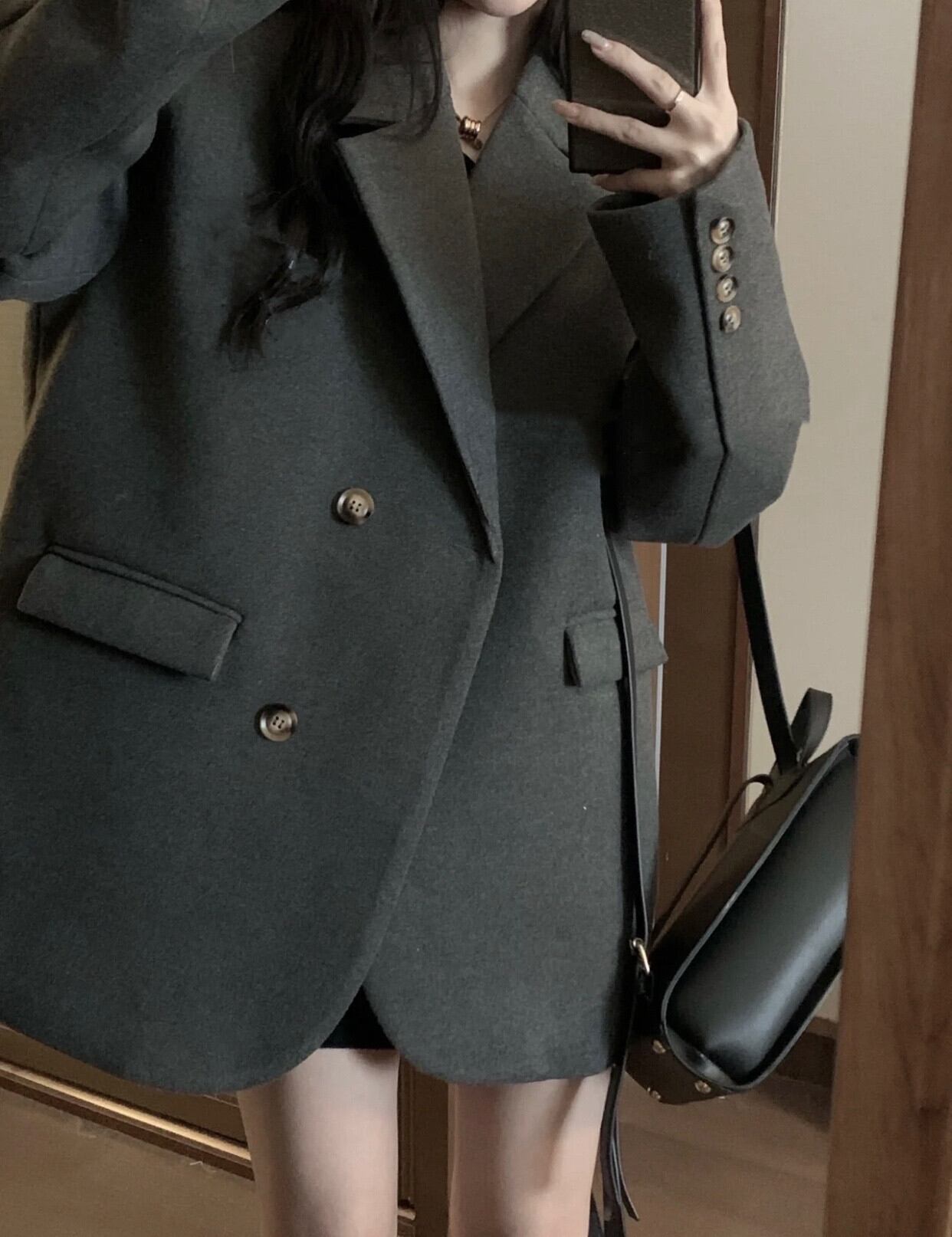 色:グレーのスーツ