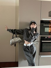 スタイルカジュアルギャザーフードジャケット オータムルーズショートトップス 秋物 10/5 秋冬 オータム ウインター ナチュラル mi4630412862552