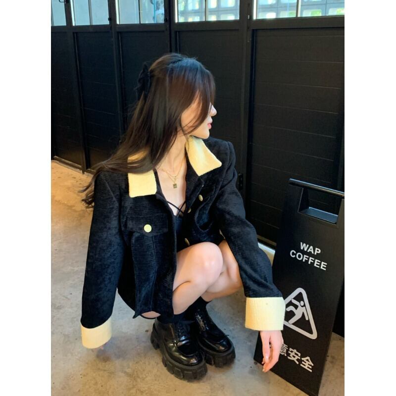 イエローカラーショートコート オータムルーズ薄手トップス 秋物 10/5 秋冬 オータム ウインター ナチュラル mi4628913567296