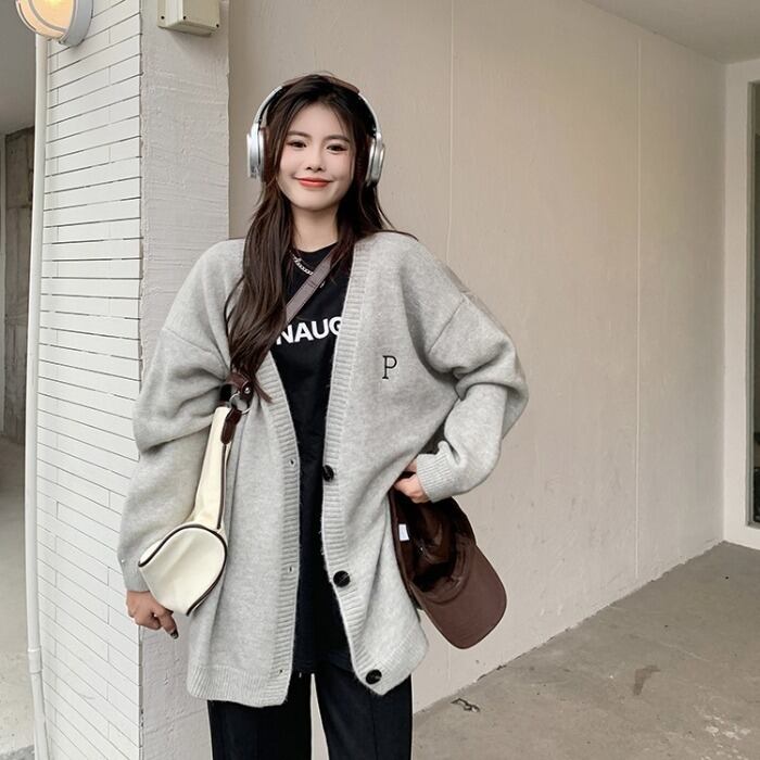 Vネックセーター ジャケット オータムルーズニットトップス 秋物 10/5 秋冬 オータム ウインター ナチュラル mi465409972554