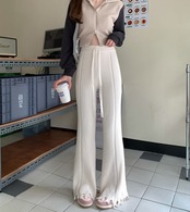 ストレッチハイウェストウェストカジュアルパンツ オータムニットワイドレッグ レッド エラスティック 伸縮 秋物 ワイドパンツ 10/5 秋冬 オータム ウインター ナチュラル mi4657340511236