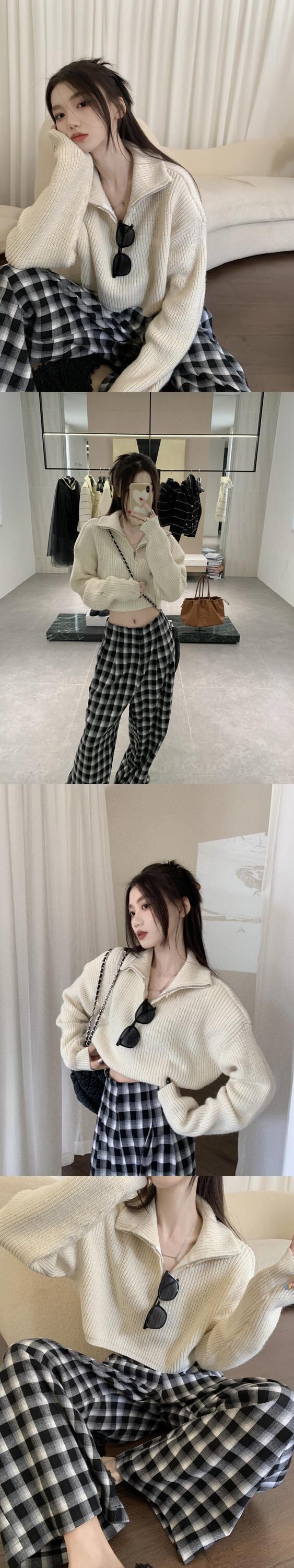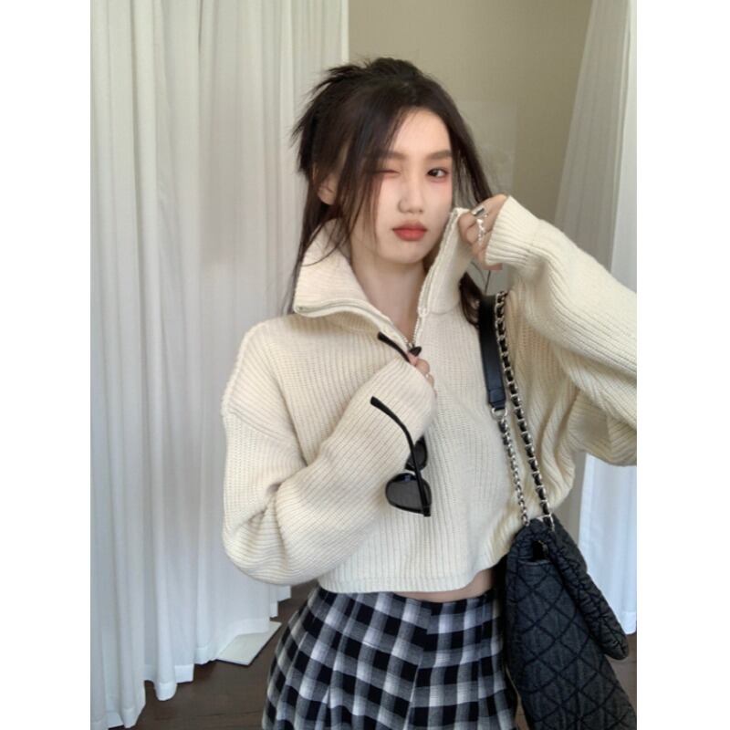 スタンダードプルオーバー セーター オータムソリッド カラージッパーニットトップス レトロ 秋物 ソリッドカラー 10/5 秋冬 オータム ウインター ナチュラル mi4636652882586