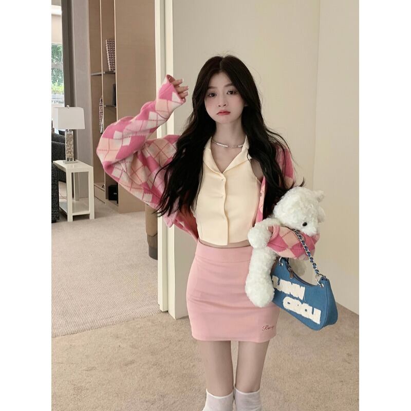 色:ピンクのジャケット一枚,ベストワンピース,ピンクスカートワンピース