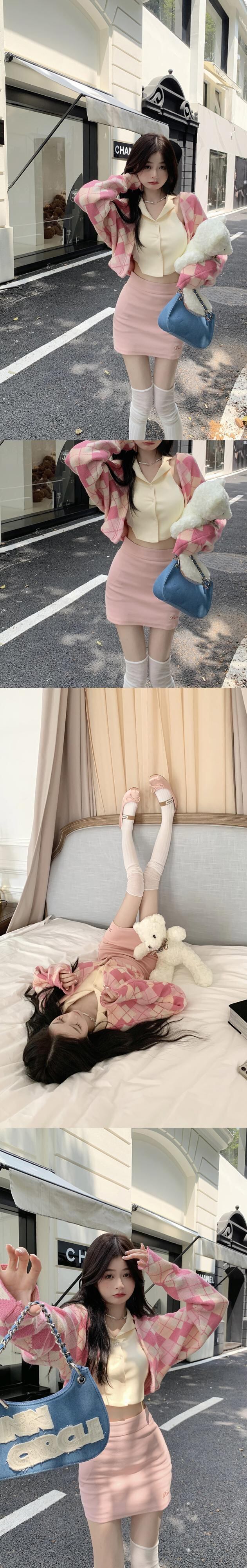 オータム格子柄ニットカーディガンホルタースカート セット 大人ガーリー スウィート キュート カジュアル 秋物 10/5 秋冬 オータム ウインター ナチュラル mi4644974710468
