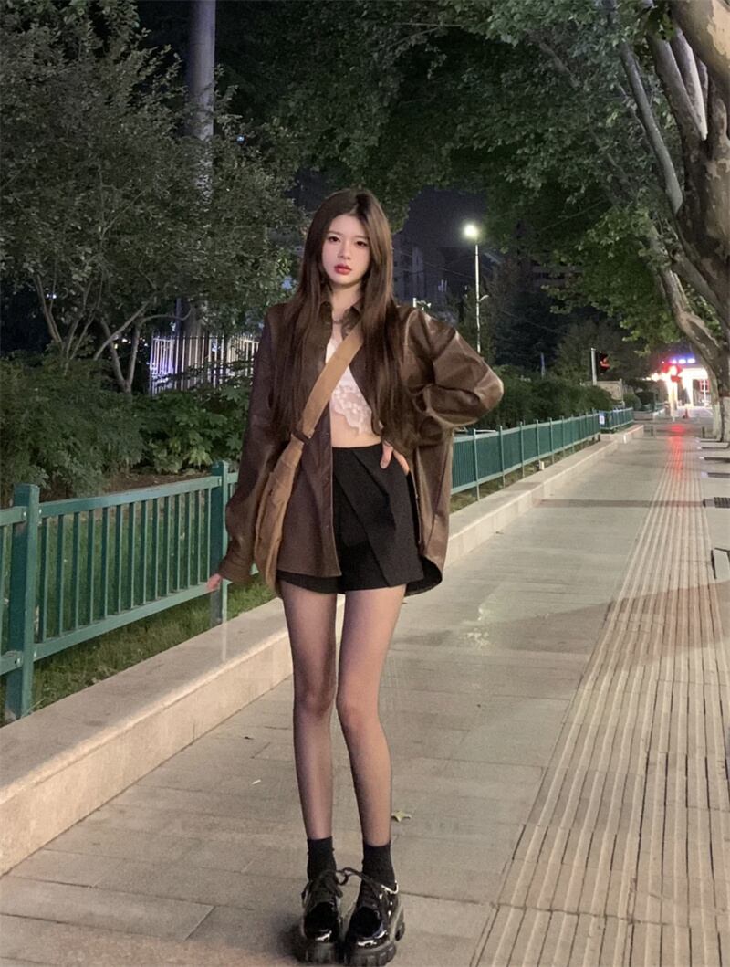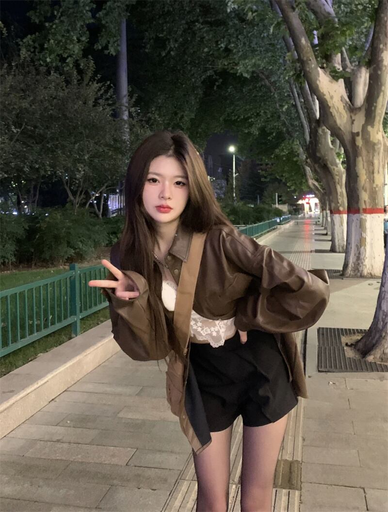 スタンダードレザージャケット オータムルーズシャツ ロング レトロ 秋物 10/5 秋冬 オータム ウインター ナチュラル mi4683660756362