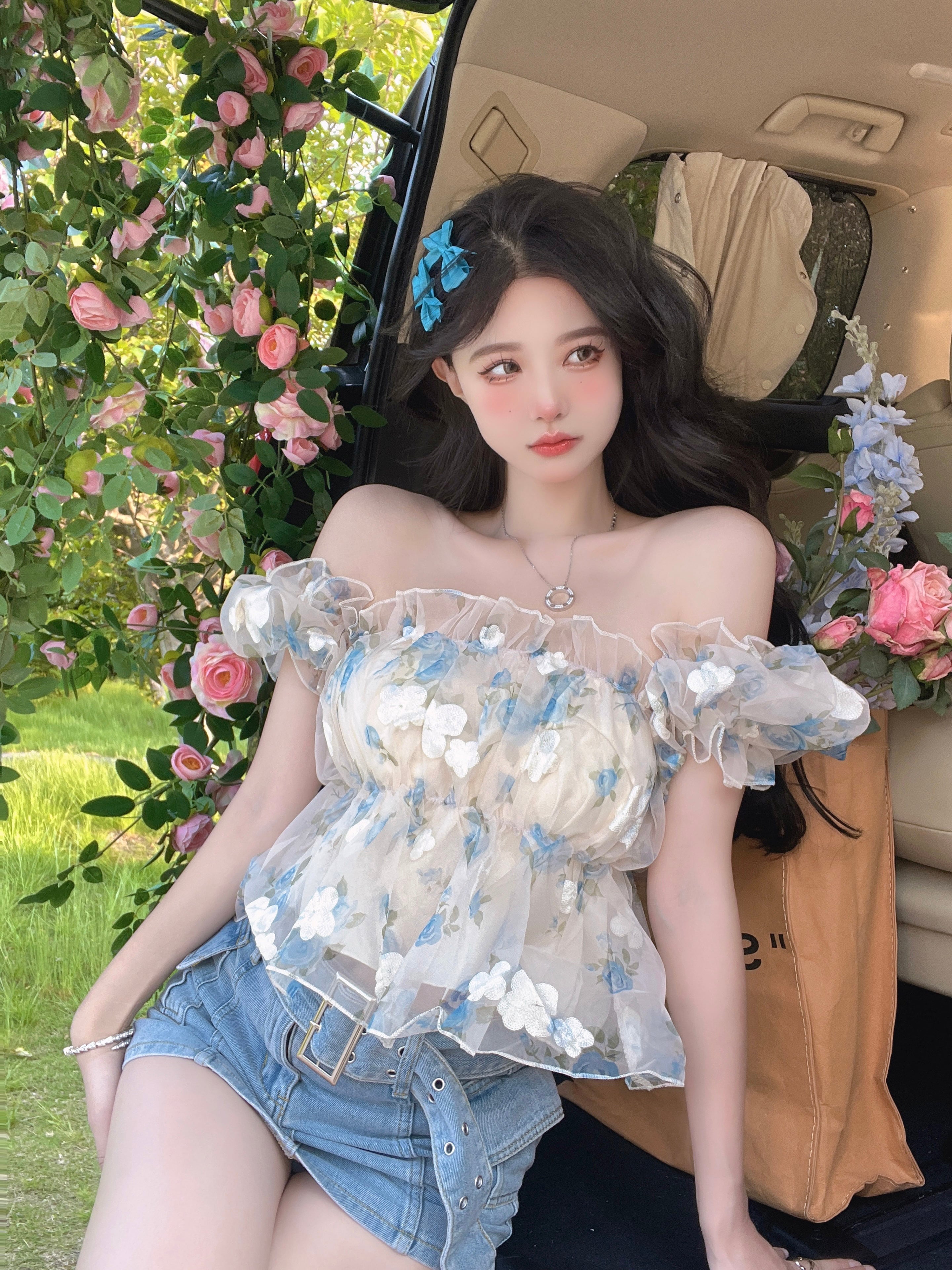 フローラルトップス サマースリムショートスリーブシャツ 夏物 花柄 10/5 秋冬 オータム ウインター ナチュラル mi4687776204948