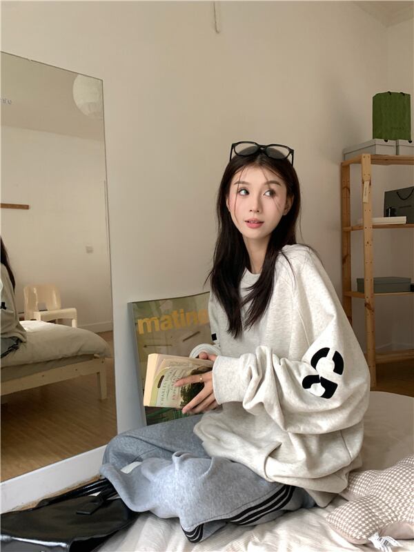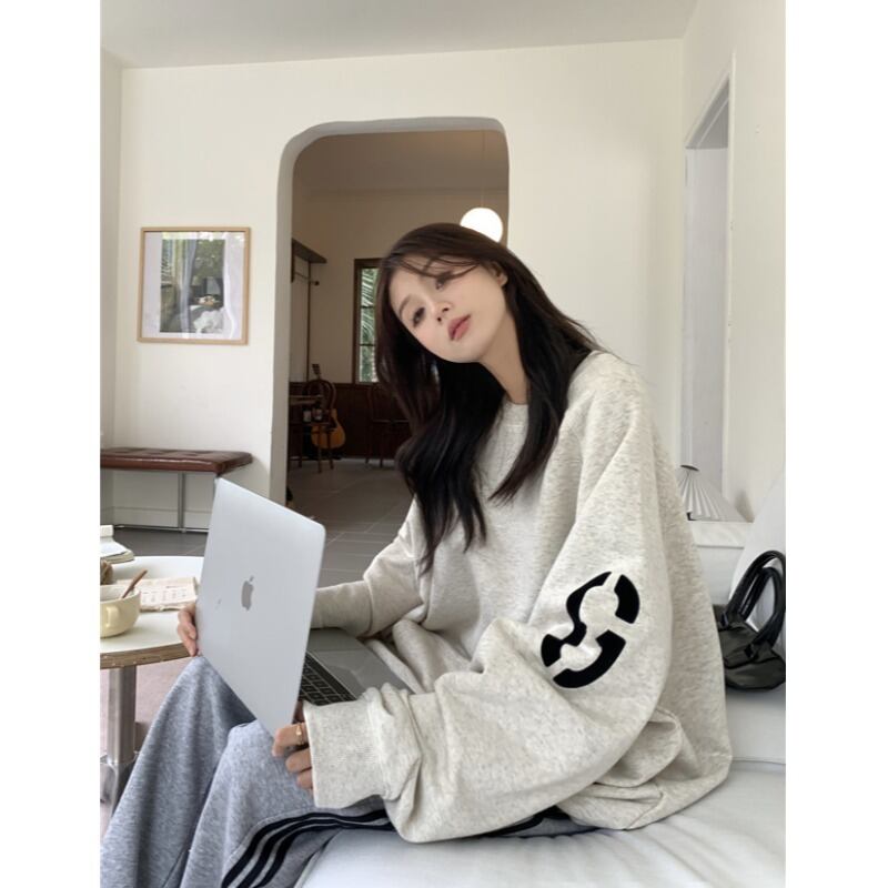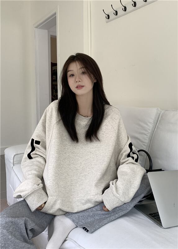 ラウンドネックグレーベルベットセーター オータムウィンタースタイルトップス ロング 秋物 冬物 Oネック 10/5 秋冬 オータム ウインター ナチュラル mi4647041659883