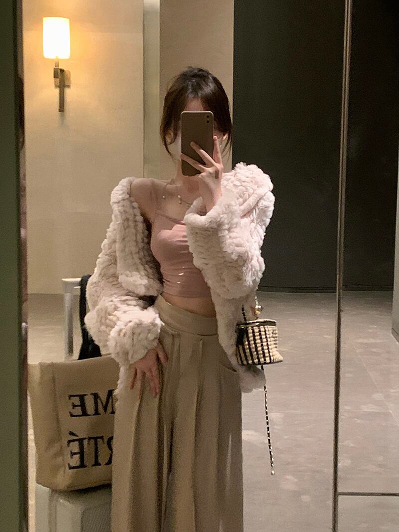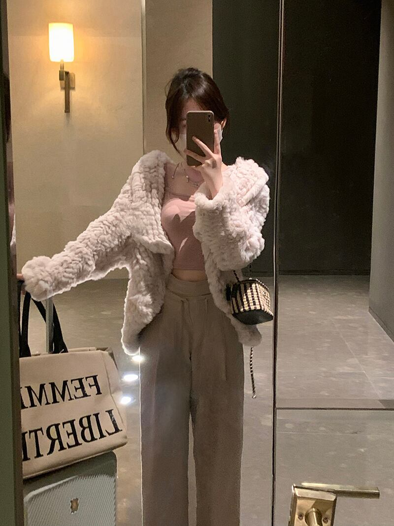 色:レンコンでんぷんのスリング,レックスラビットファーコート,デザイナーズボン