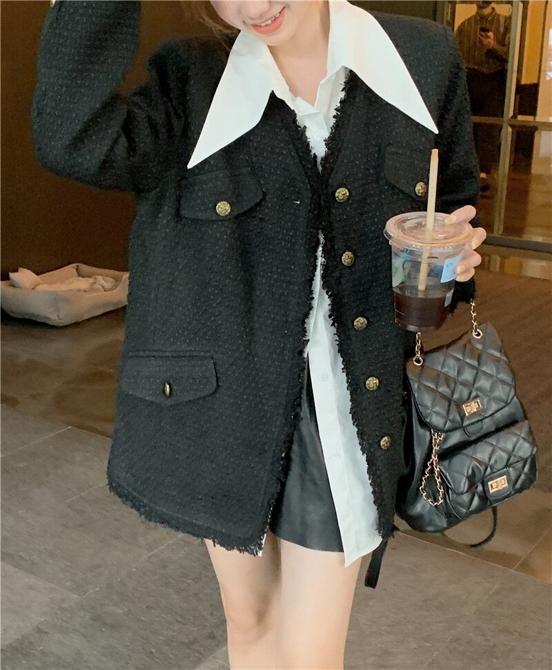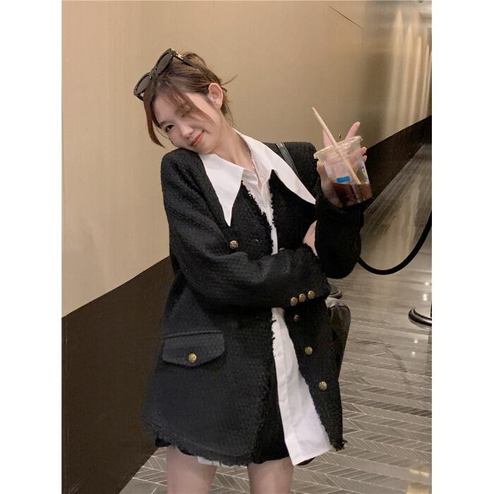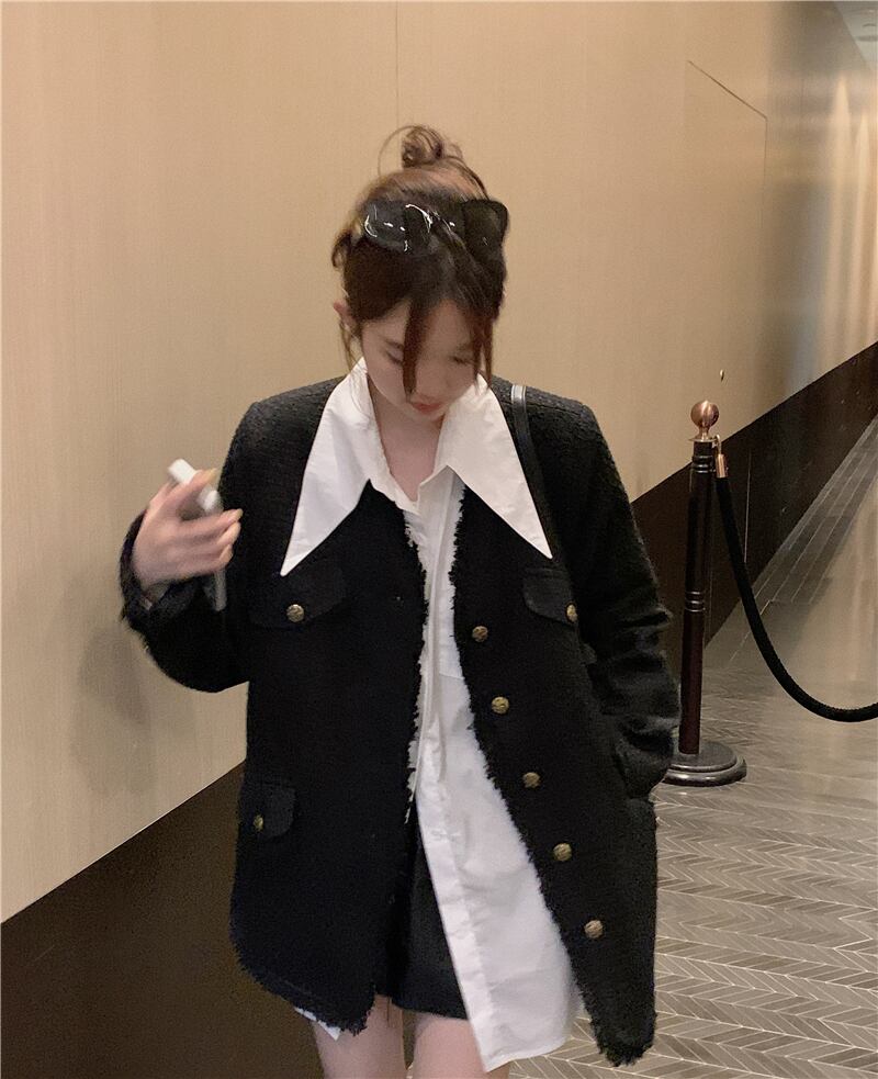 色:白いシャツのワンピース,ジャケット一枚