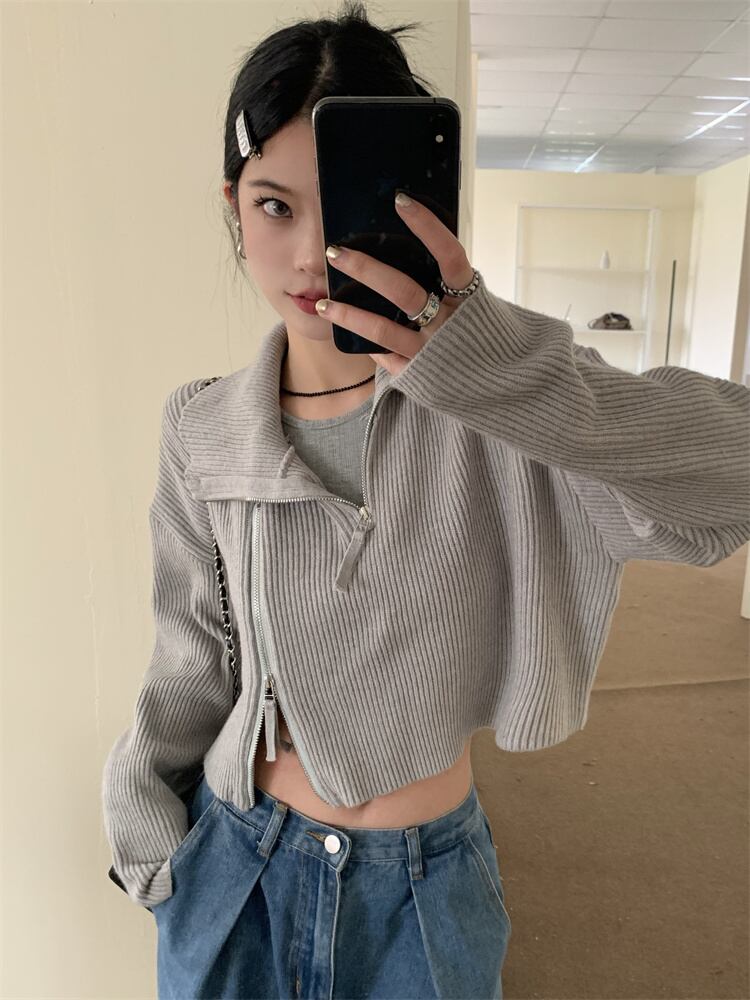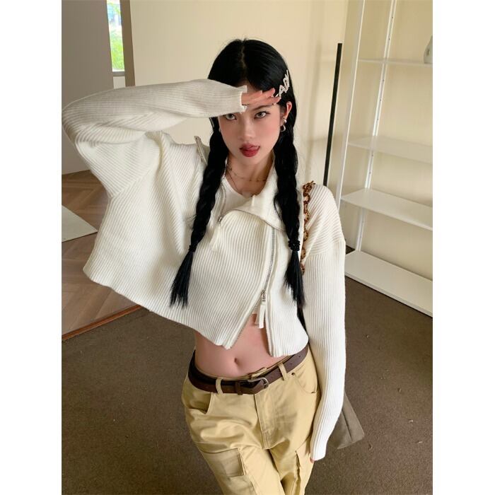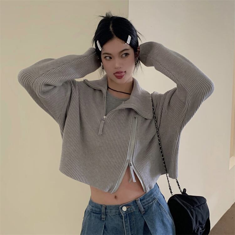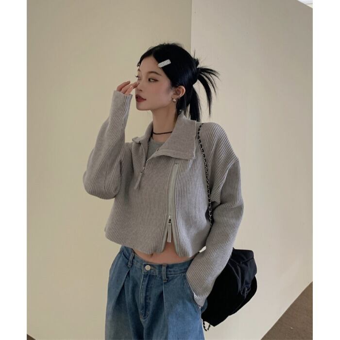 ジッパーセーター ジャケット オータムブラックショートニットトップス 秋物 10/5 秋冬 オータム ウインター ナチュラル mi462875659659