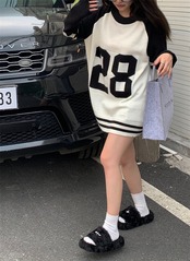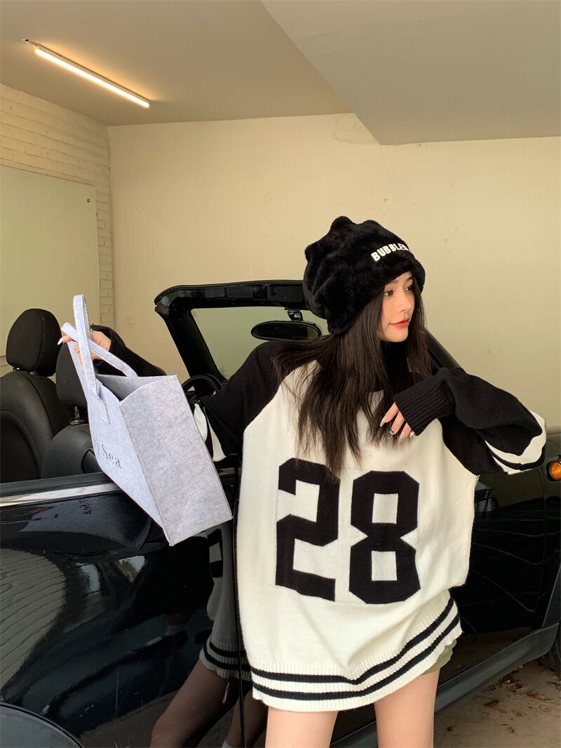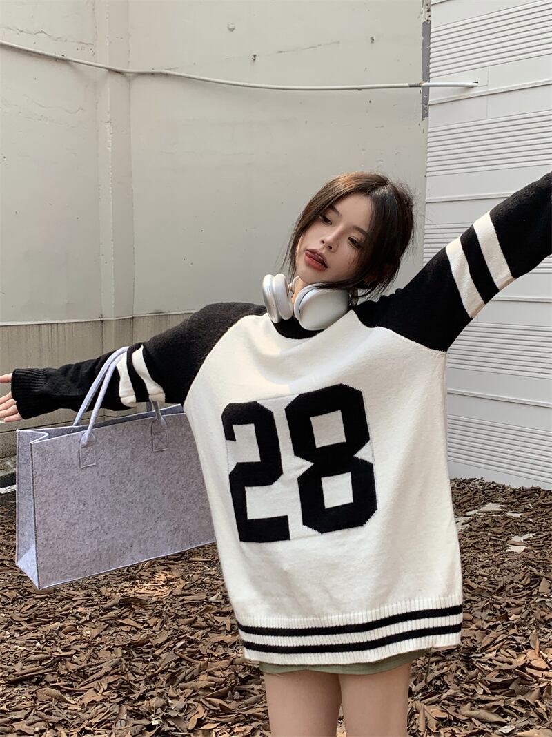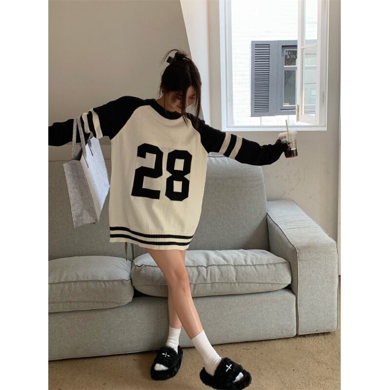 スタンダードスタイルルーズプルオーバー セーター オータムカジュアルラウンドネックニットトップス ロング レトロ 秋物 Oネック 10/5 秋冬 オータム ウインター ナチュラル mi4667374899937