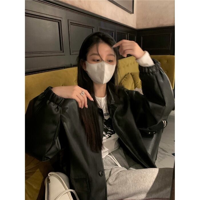 ブラックレザージャケット オータムウィンタースタイルルーズトップス ストリート 大人ガーリー スウィート キュート カジュアル 秋物 冬物 10/5 秋冬 オータム ウインター ナチュラル mi4646883914274