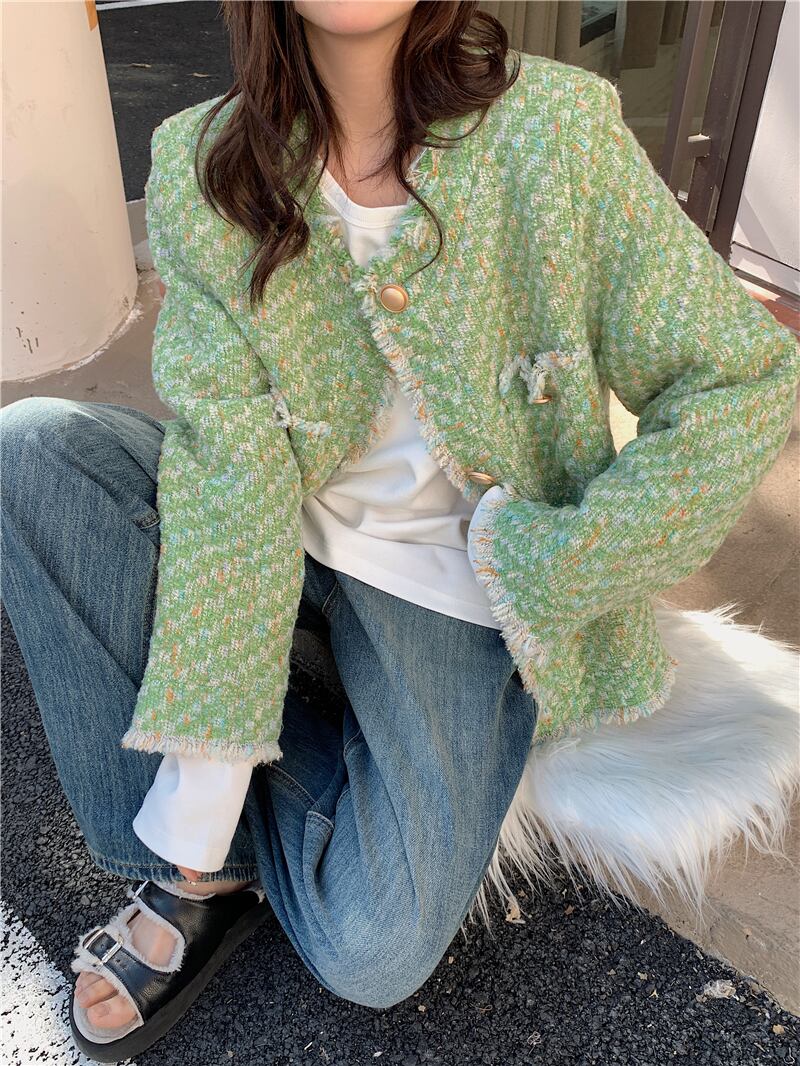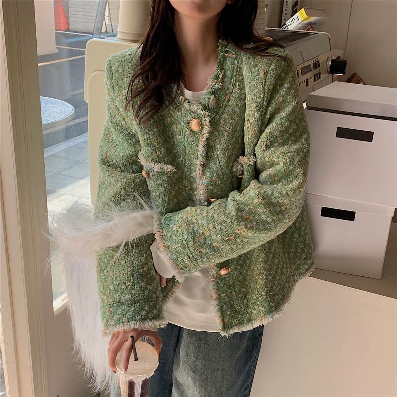 ツィードジャケット オータムウィンタースタンダードルーズ薄手トップス ロング レトロ 秋物 冬物 10/5 秋冬 オータム ウインター ナチュラル mi4671261984096