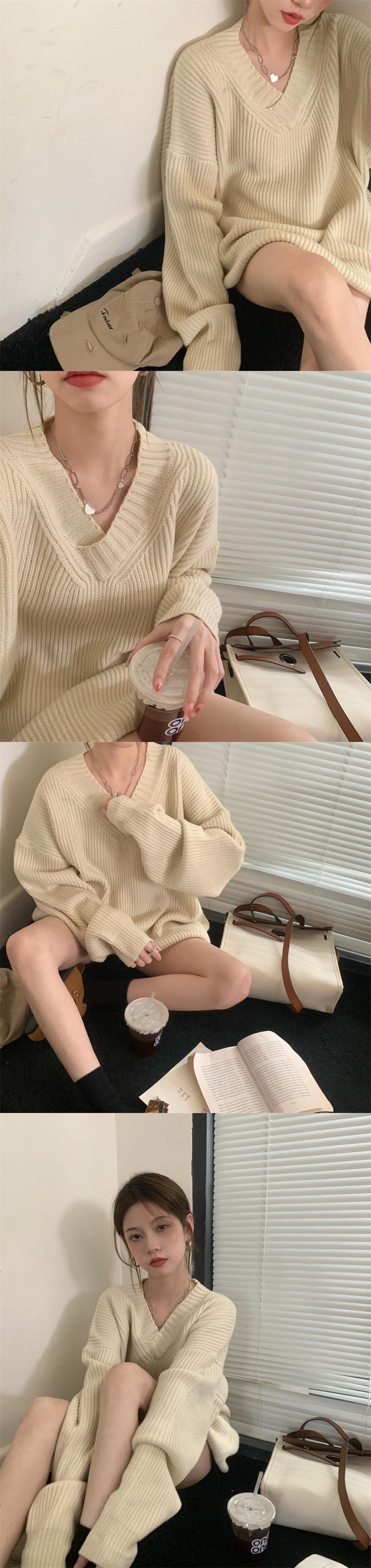 ブラックVネックセーター スタイルニットトップス 10/5 秋冬 オータム ウインター ナチュラル mi4630171857152