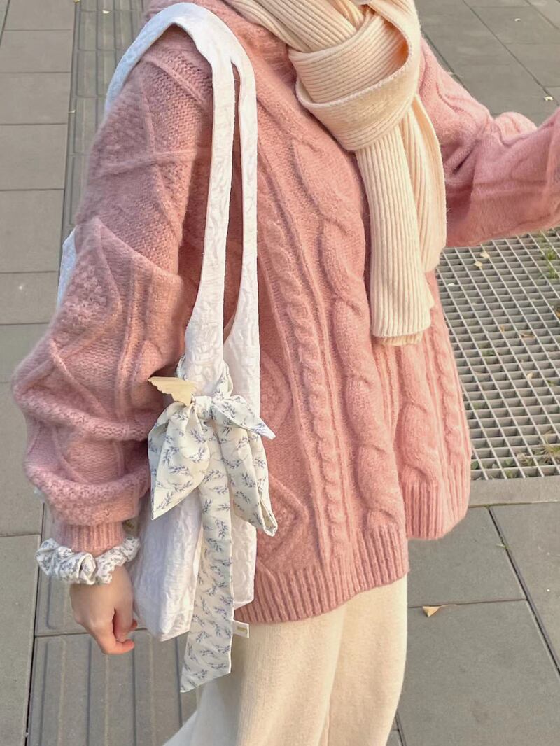 ルーズプルオーバー セーター オータムトップス ロング ピンク 大人ガーリー スウィート キュート カジュアル 秋物 10/5 秋冬 オータム ウインター ナチュラル mi463667176981