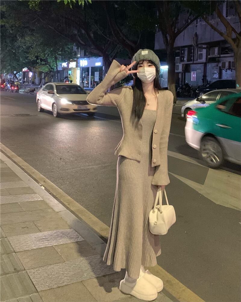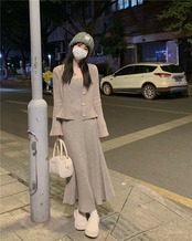 オータムスカート スリムドレス Vネックニットカーディガンセット 秋物 10/5 秋冬 オータム ウインター ナチュラル mi4661496277407