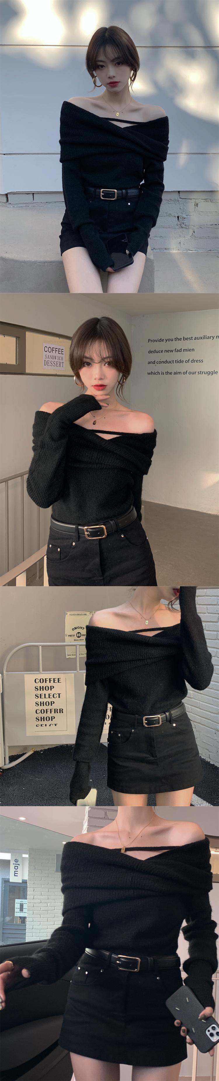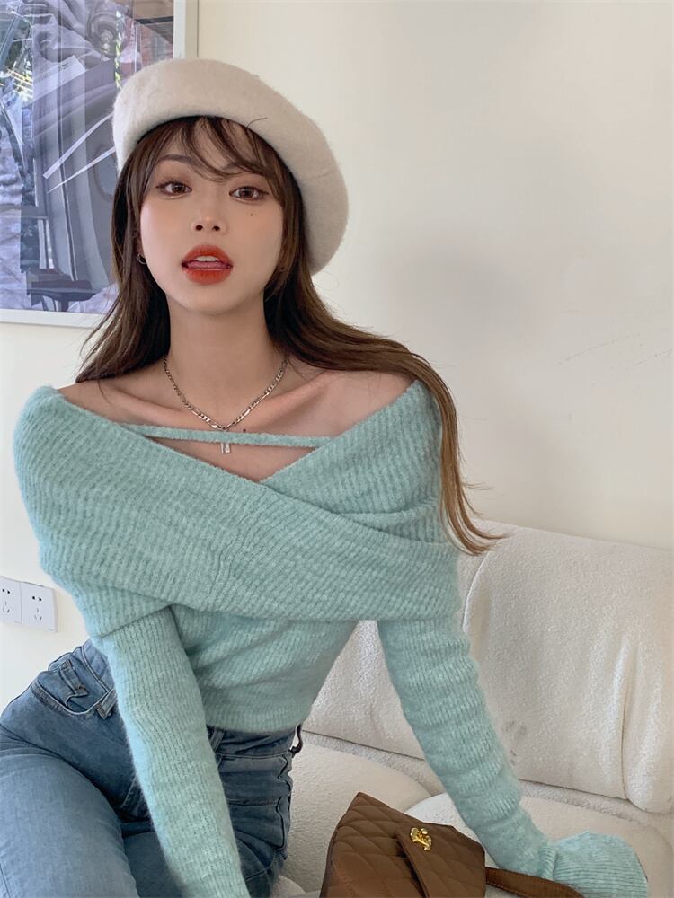 薄手カラーセーター オータムスリムショートトップス ロング 秋物 10/5 秋冬 オータム ウインター ナチュラル mi4627695355475