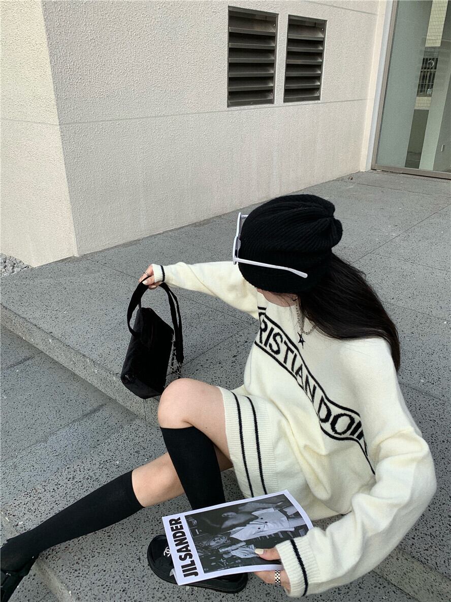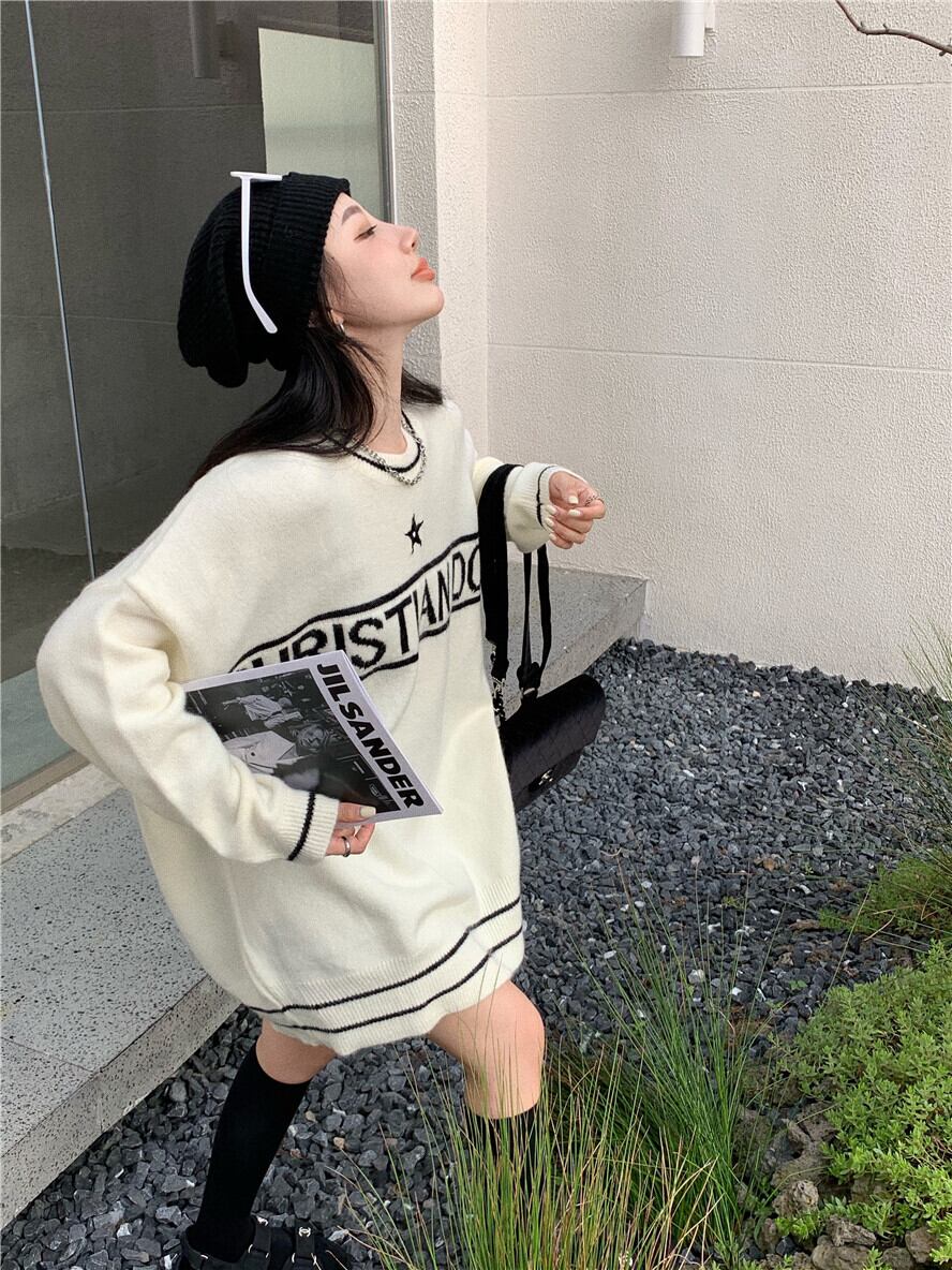刺繍ルーズプルオーバー セーター オータムトップス 秋物 10/5 秋冬 オータム ウインター ナチュラル mi4655951933678