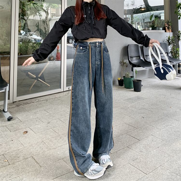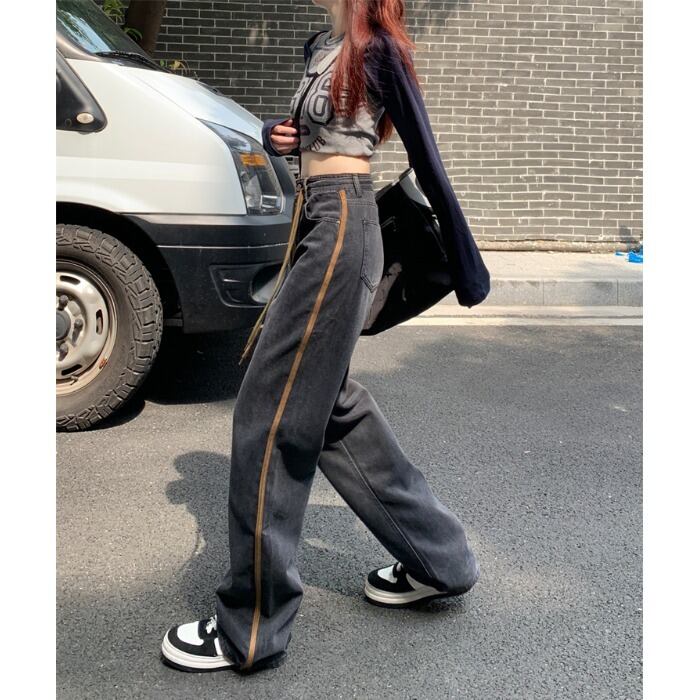 カラージーンズ オータムルーズパンツ ハイウェストスリム レース 秋物 レースアップ 10/5 秋冬 オータム ウインター ナチュラル mi4633424262177